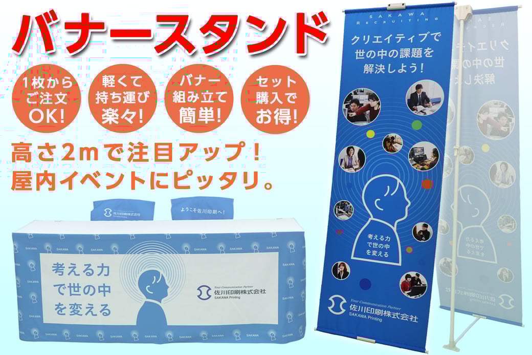 「バナースタンド」は、屋内イベントにピッタリ。高さ最大2mで注目アップです!