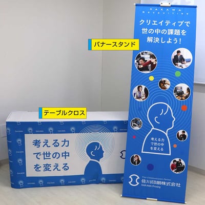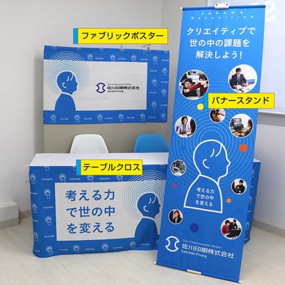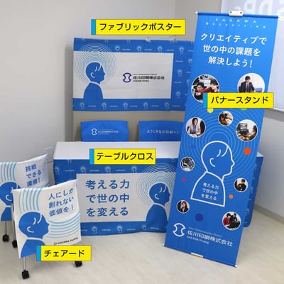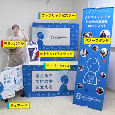 イベントに必要なツールは、バナースタンド以外にもございます。同じデザインで展開すると、統一感が出て、よりアピールできます。