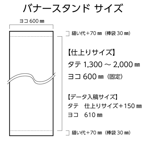 ※タテは1300~2000mmの間で刻んでもOKです。ヨコは600mm固定です。スタンド代も含みます。