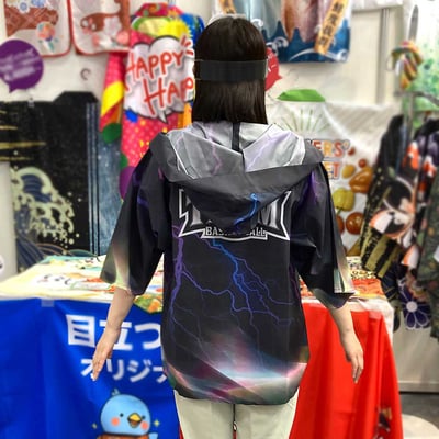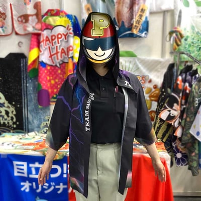 ★製品サンプルをお貸しできます(要返却・返送料はお客様ご負担)ので、試着してご覧ください。お問合せフォームより「フード付きハッピィハッピ」と「サイズ(MorL)」のご希望をお伝えください。