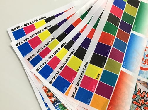 同じポリエステル100%の布でも、種類が違うと質感が全く違い、また発色も変わってきます。