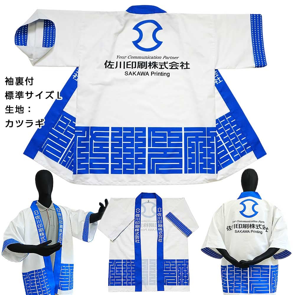 本染めのハッピのデザインをそのまま、当店の「標準Lサイズ・袖裏付」にさせて頂きました。ありがとうございます!