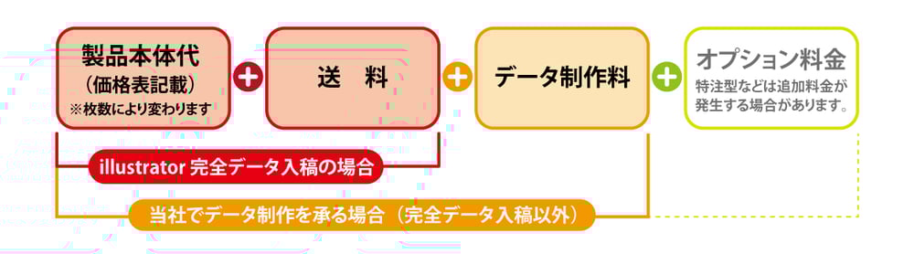 (価格表単価×枚数)+送料+データ制作料+【オプション料金×枚数】