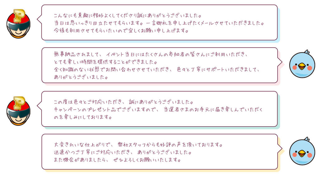 ご利用を迷っている方のために、製品をご注文、ご利用いただきましたお客様からの声を一部掲載させて頂いております。